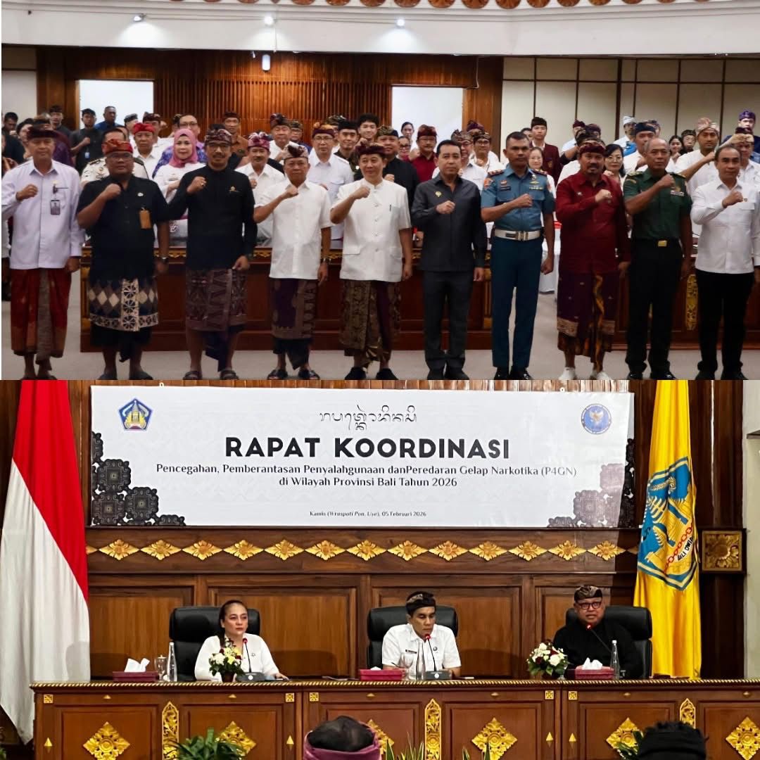 Pemerintah Provinsi Bali menegaskan komitmen serius dalam pencegahan, pemberantasan, penyalahgunaan, dan peredaran gelap narkotika (P4GN) melalui Rapat Koordinasi P4GN Wilayah Provinsi Bali Tahun 2026 yang digelar di Gedung Wiswa Sabha Utama, Kantor Gubernur Bali, pada Kamis (5/2).