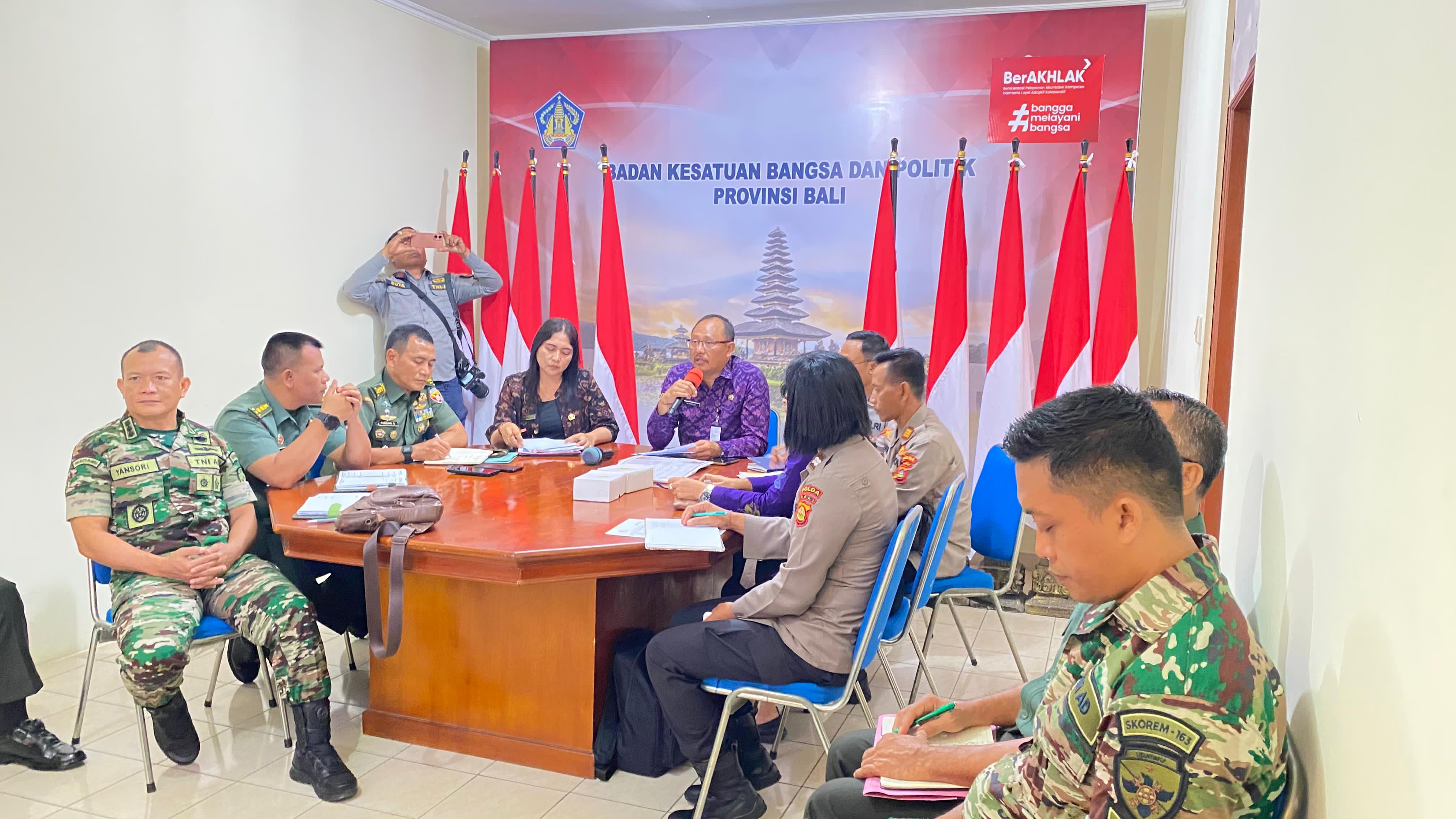 Kepala Badan Kesatuan Bangsa dan Politik (Kesbangpol) Provinsi Bali, Ngurah Wiryanata pimpin rapat persiapan penandatanganan serentak NPHD pengamanan Pilkada Tahun 2024, pada hari Selasa, 2 April 2024 bertempat di Ruang Rapat Timur Badan Kesbangpol Bali dan didampingi plt. Kepala Bidang Politik Dalam Negeri, Kadek Rudiani. Kegiatan ini dilaksanakan secara daring dan luring dengan mengundang Kepala Kepolisian Daerah Bali, Pangdam IX Udayana, Danrem 163 Wirasatya beserta Kepala Badan Kesatuan Bangsa dan Politik Kabupaten/Kota se-Bali; Kapolres Kabupaten/Kota se-Bali; Dandim Kabupaten/Kota se-Bali. Tujuan dari rapat ini dalam rangka persiapan penandatanganan serentak NPHD Pengamanan Pilkada Tahun 2024 untuk TNI dan POLRI yang kemudian disepakati akan dilaksanakan pada 29 April 2024 di Wiswa Sabha Utama Kantor Gubernur Bali.