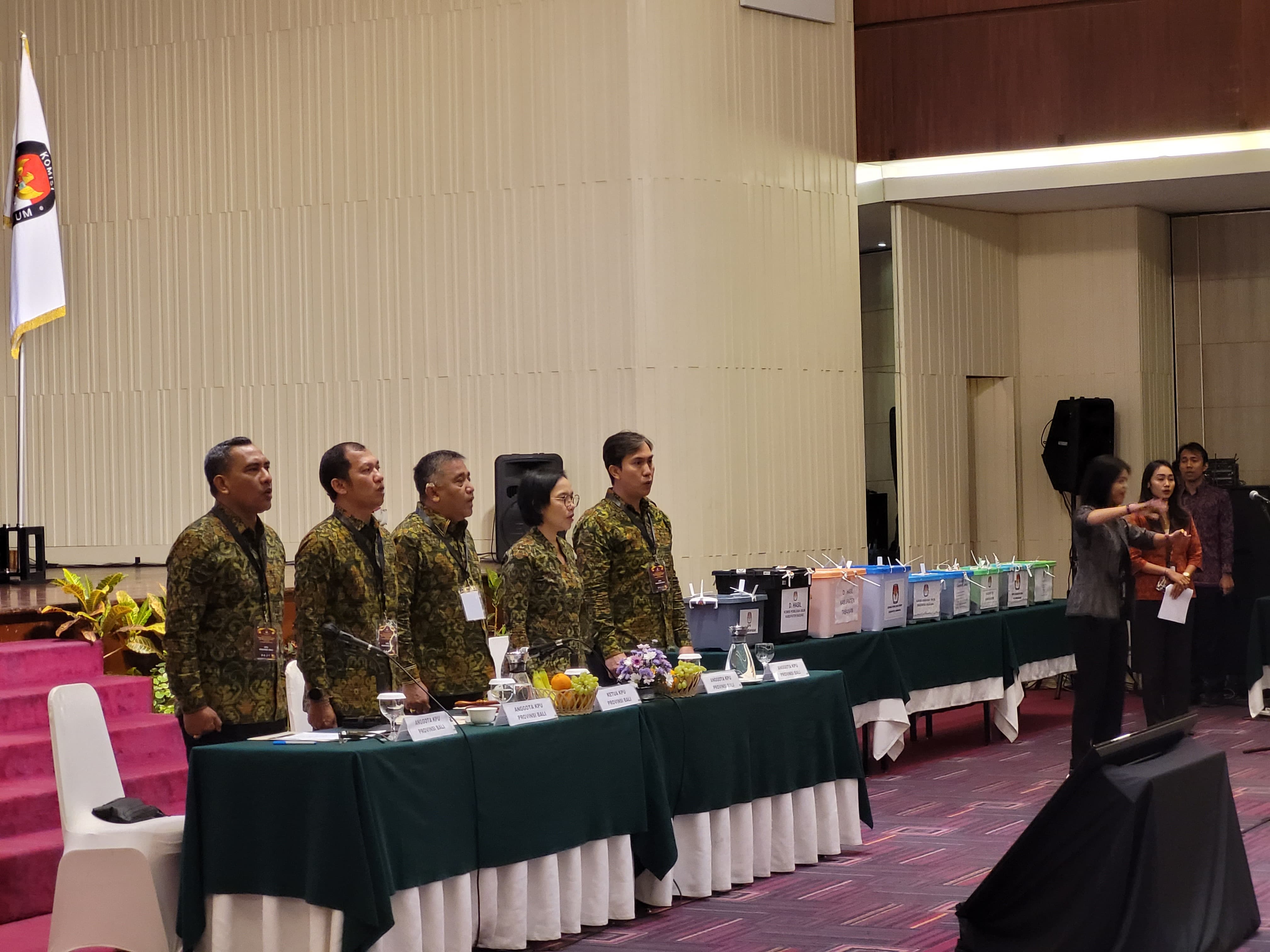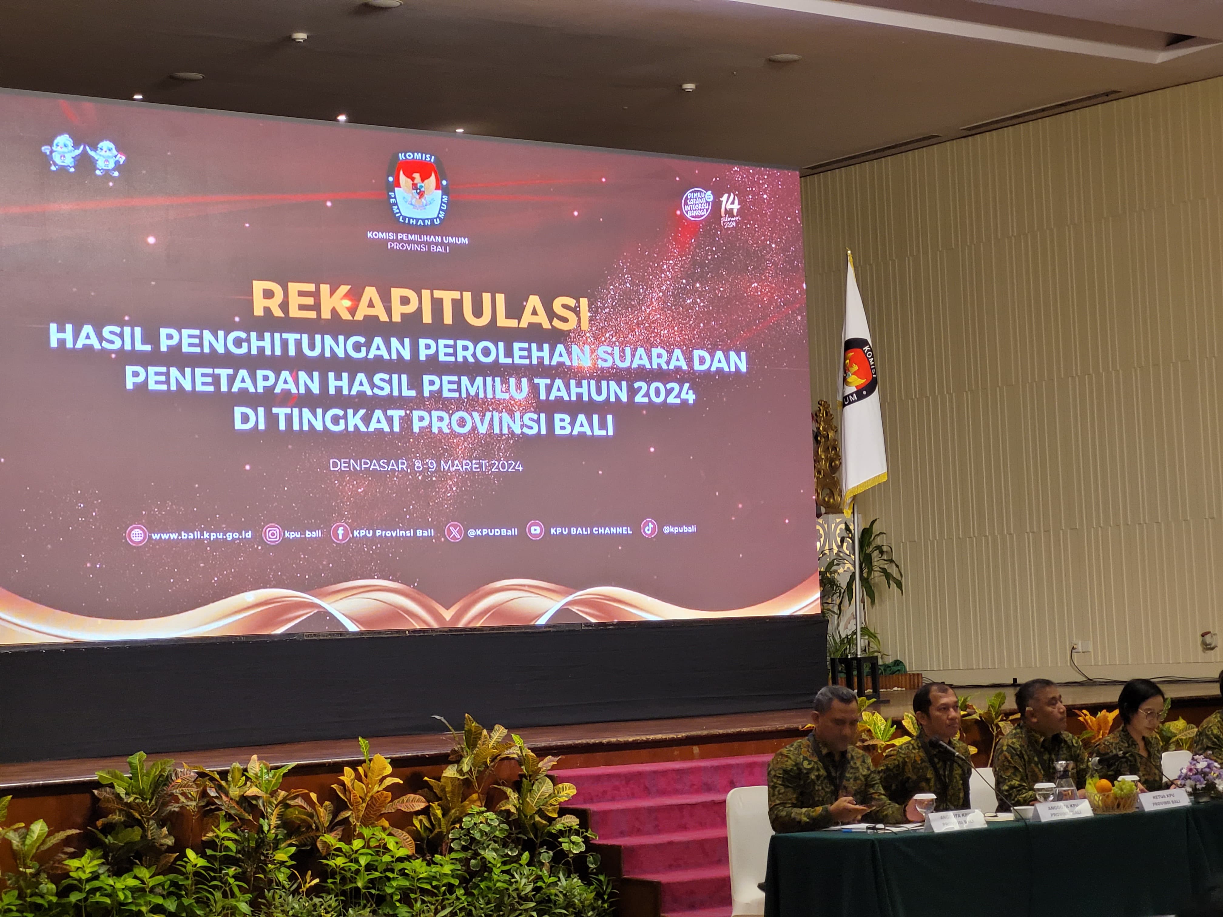 Jumat (8/03) Kepala Badan Kesatuan Bangsa dan Politik (Kesbangpol) Provinsi Bali, Ngurah Wiryanta hadiri rapat Rekapitulasi Hasil Perhitungan Perolehan Suara dan Penetapan Hasil Pemilu Tahun 2024 di Tingkat Provinsi Bali.