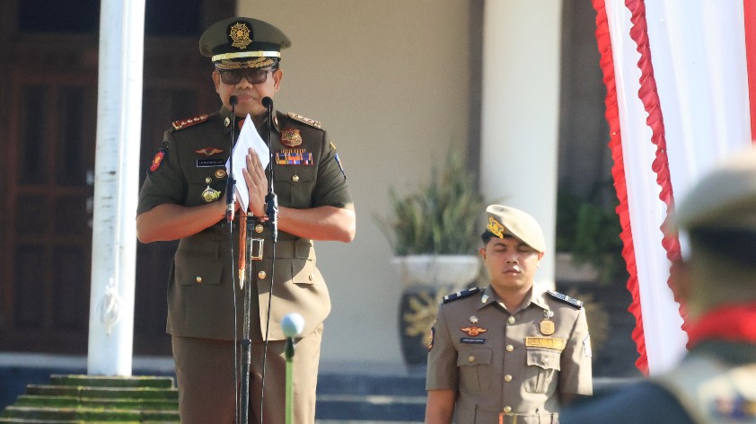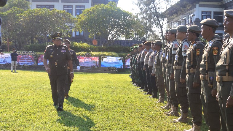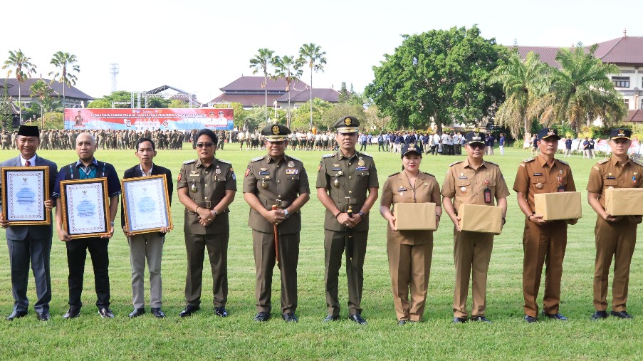 BADUNG – Satuan Polisi Pamong Praja dan Satuan Perlindungan Masyarakat memiliki peran penting dalam menciptakan keamanan dan ketentraman dalam mewujudkan kesejahteraan masyarakat. Hal tersebut disampaikan oleh Penjabat Gubernur Bali, S.M. Mahendra Jaya dalam peringatan HUT Satuan Polisi Pamong Praja ke-74 dan Satuan Perlindungan Masyarakat ke-62 Provinsi Bali Tahun 2024 pada Jumat (22/3) pagi bertempat di Lapangan Mangupura Mandala Puspem Badung.