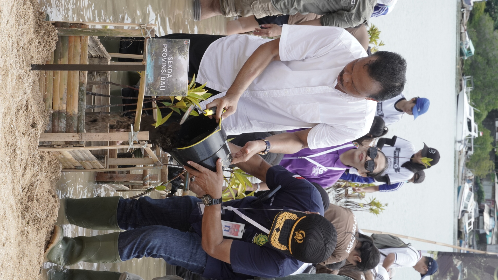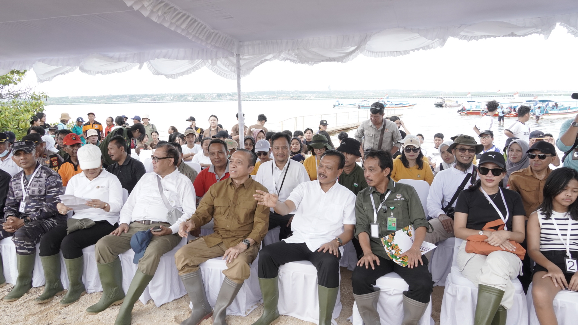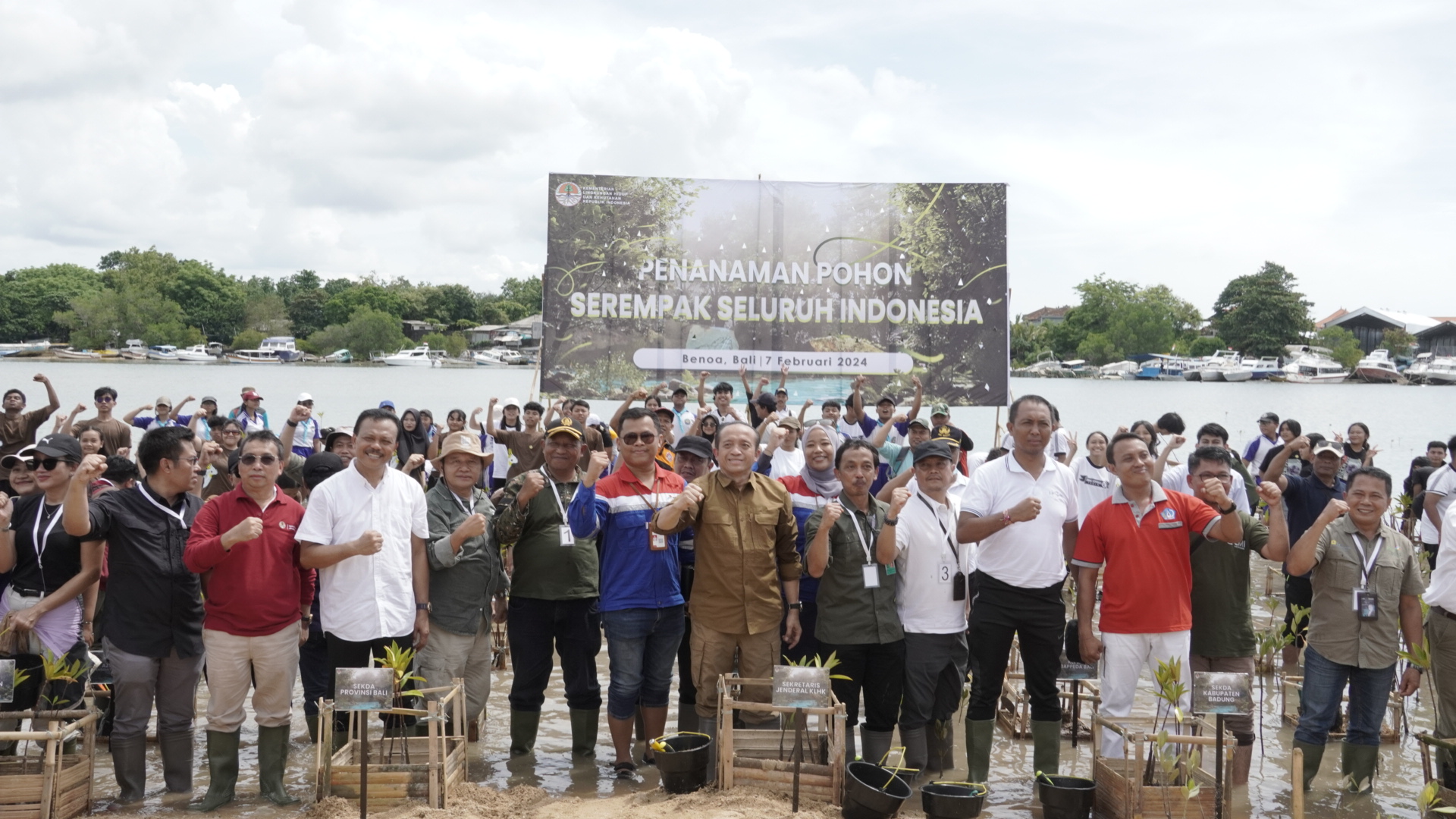 BADUNG - Sekretaris Daerah Provinsi Bali, Dewa Made Indra menghadiri kegiatan Penanaman Pohon Serentak Seluruh Indonesia yang diselenggarakan oleh Kementerian Lingkungan Hidup dan Kehutanan (KLHK) di Nusa Pudut, Tanjung Benoa, Kuta Selatan, Badung, Rabu (7/2)