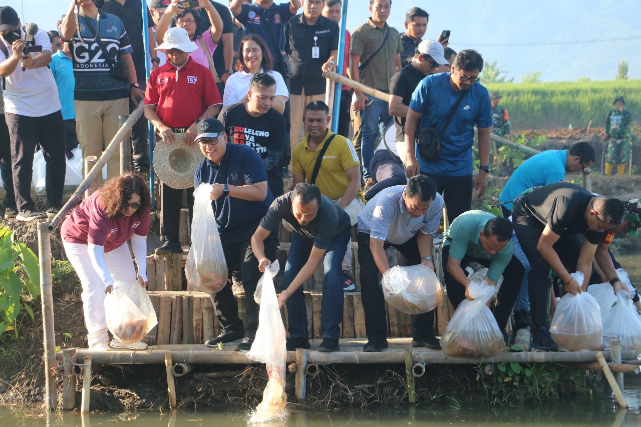 Gerakan tanam cabai juga diikuti pencanangan smart farming, penanaman bibit pohon penghijauan dan penebaran bibit ikan pada kolam yang berada di areal lahan.