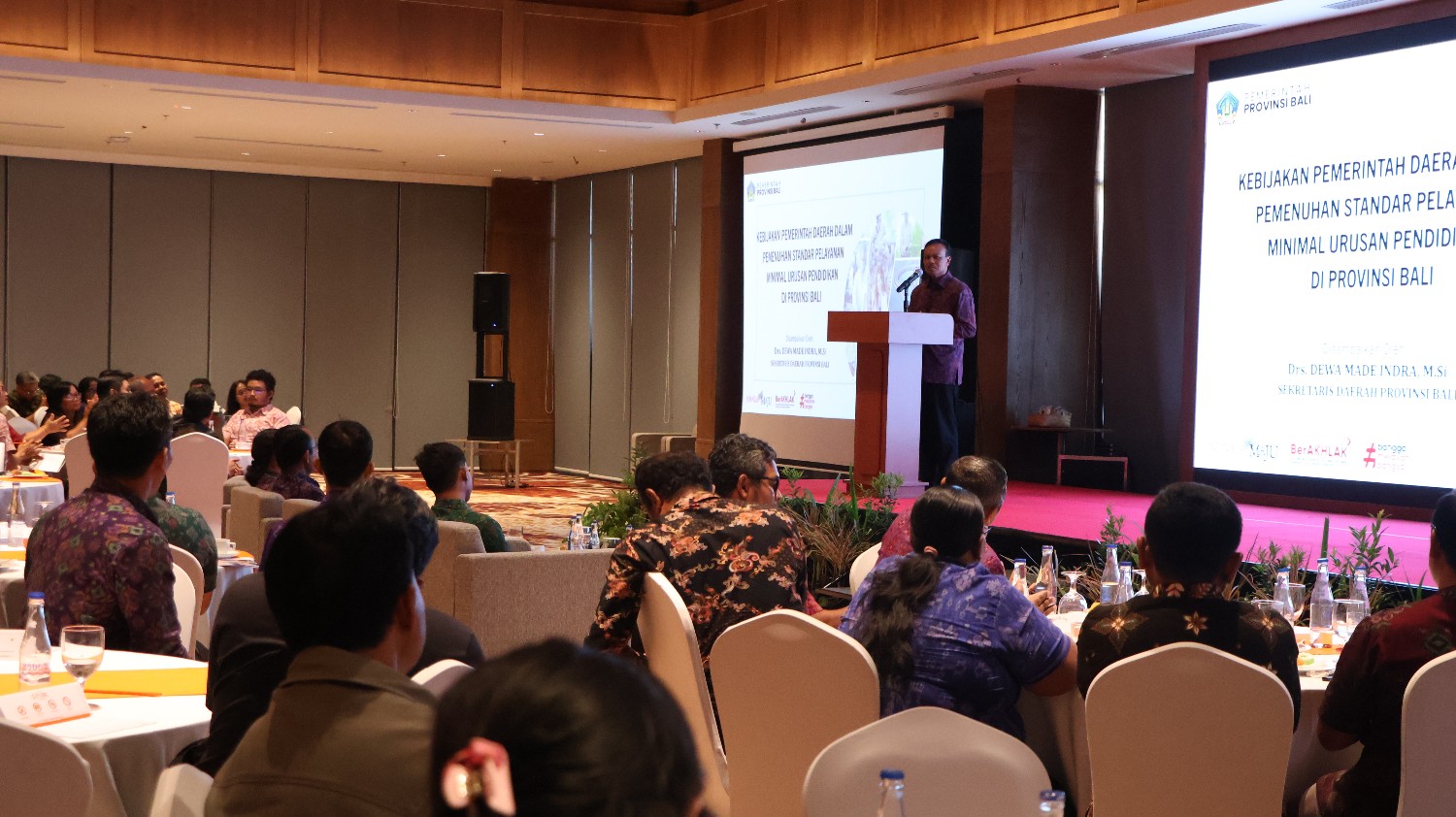 BADUNG - Sekretaris Daerah (Sekda) Provinsi Bali Dewa Made Indra membuka secara resmi Pendampingan Pemenuhan Standar Pelayanan Minimum (SPM) Bidang Pendidikan Pemerintah Daerah di Harris Hotel and Residence, Sunset Road, Badung, Selasa (Anggara Paing, Pujut) 26 Maret 2024.