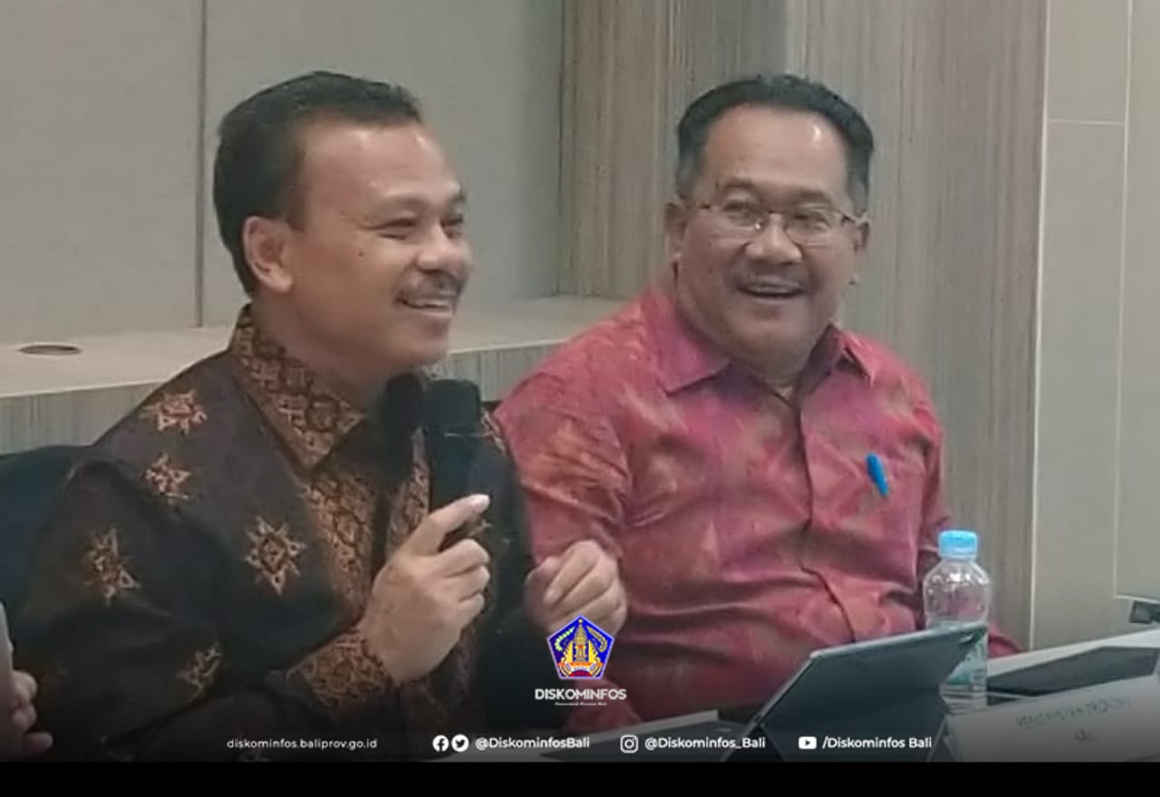 Sekretaris Daerah Provinsi Bali didampingi Kepala Dinas Komunikasi, Informatika dan Statistik, Gede Pramana, memimpin Presentasi Uji Publik Monitoring dan Evaluasi Keterbukaan Informasi Badan Publik (Monev KIP) Tahun 2023 yang diselenggarakan di Hotel Grand Mercure Kemayoran, Jakarta, Selasa (28/11/2023).