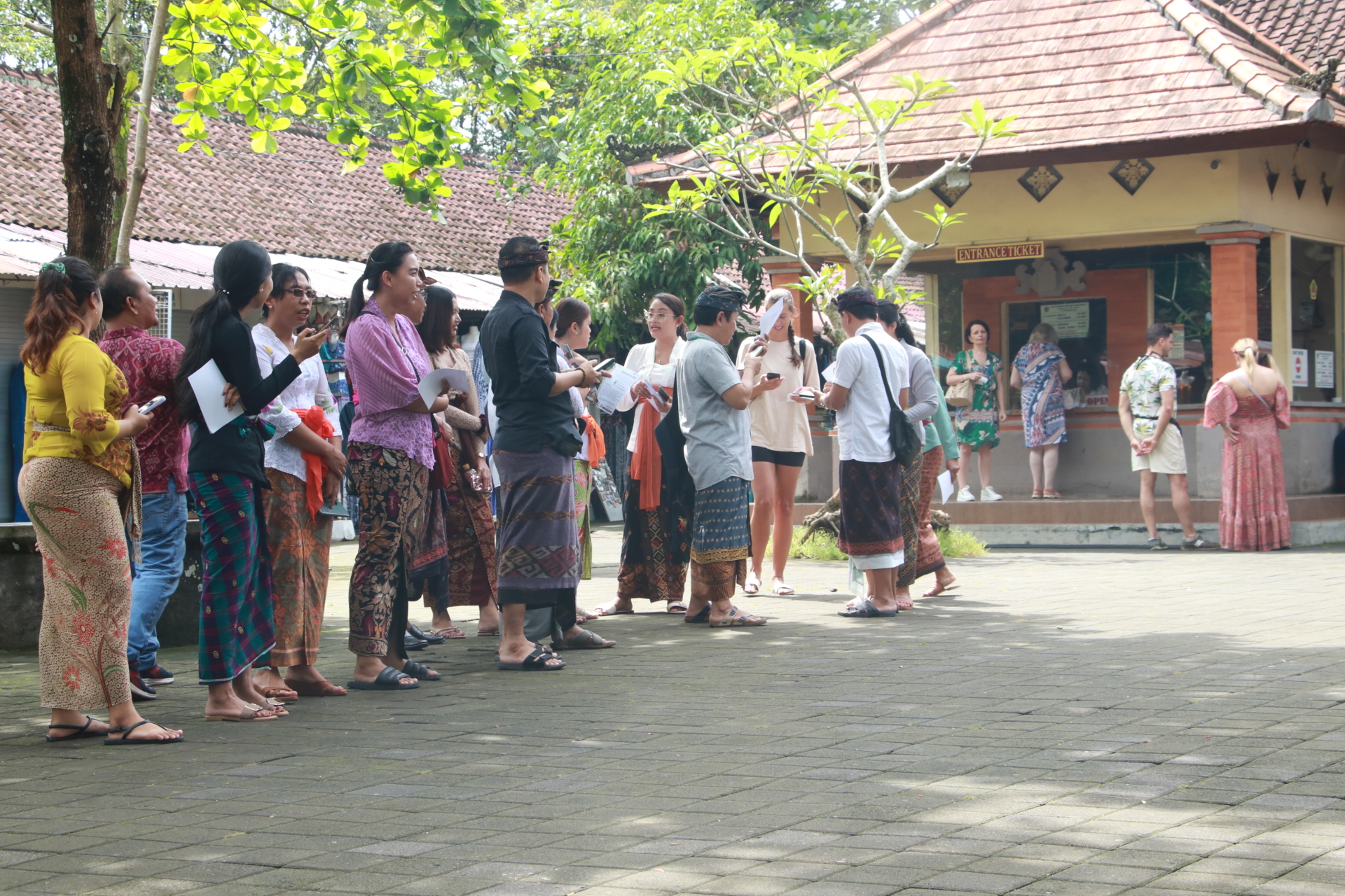 GIANYAR - Optimalisasi penerapan Peraturan Daerah (Perda) Bali Nomor 6 Tahun 2023 tentang Pungutan Bagi Wisatawan Asing (PWA), Kepala Dinas Pariwisata Provinsi Bali, Cok Bagus Pemayun bersama jajaran dan pemangku kepentingan terkait gencar melaksanakan monitoring dan evaluasi ke sejumlah Daerah Tujuan Wisata (DTW). Sesuai yang diagendakan, hari ini, Kamis (25/4) kembali dilaksanakan Inspeksi Mendadak (Sidak) di DTW Goa Gajah, Bedulu, Blahbatuh, Gianyar.