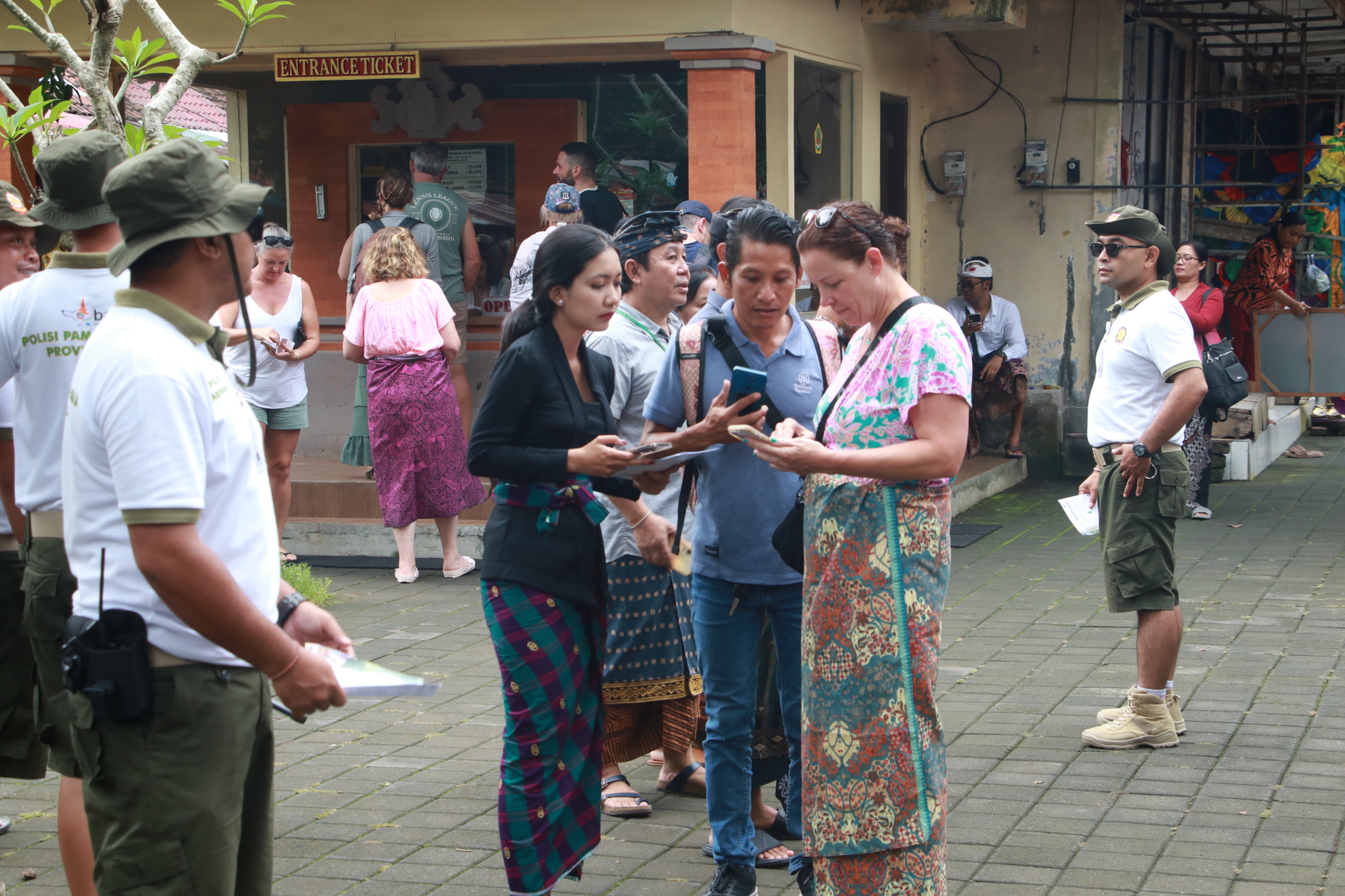 Di lokasi sidak, di depan areal loket pembayaran tiket masuk DTW Goa Gajah, puluhan tim gabungan yang terdiri dari jajaran Dispar Prov Bali, Dispar Kabupaten Gianyar, Pol. Pariwisata Prov. Bali, pengelola DTW Goa Gajah, hingga perwakilan perhimpunan sektor pariwisata seperti GIPI, PUTRI, ASITA dsb, tampak langsung menghampiri setiap wisman untuk melakukan scanning terhadap bukti transaksi pembayaran. Maupun mengarahkan wisatawan untuk mengakses portal lovebali.baliprov.go.id untuk melakukan pembayaran, apabila terdapat wisman yang belum melakukan pembayaran.