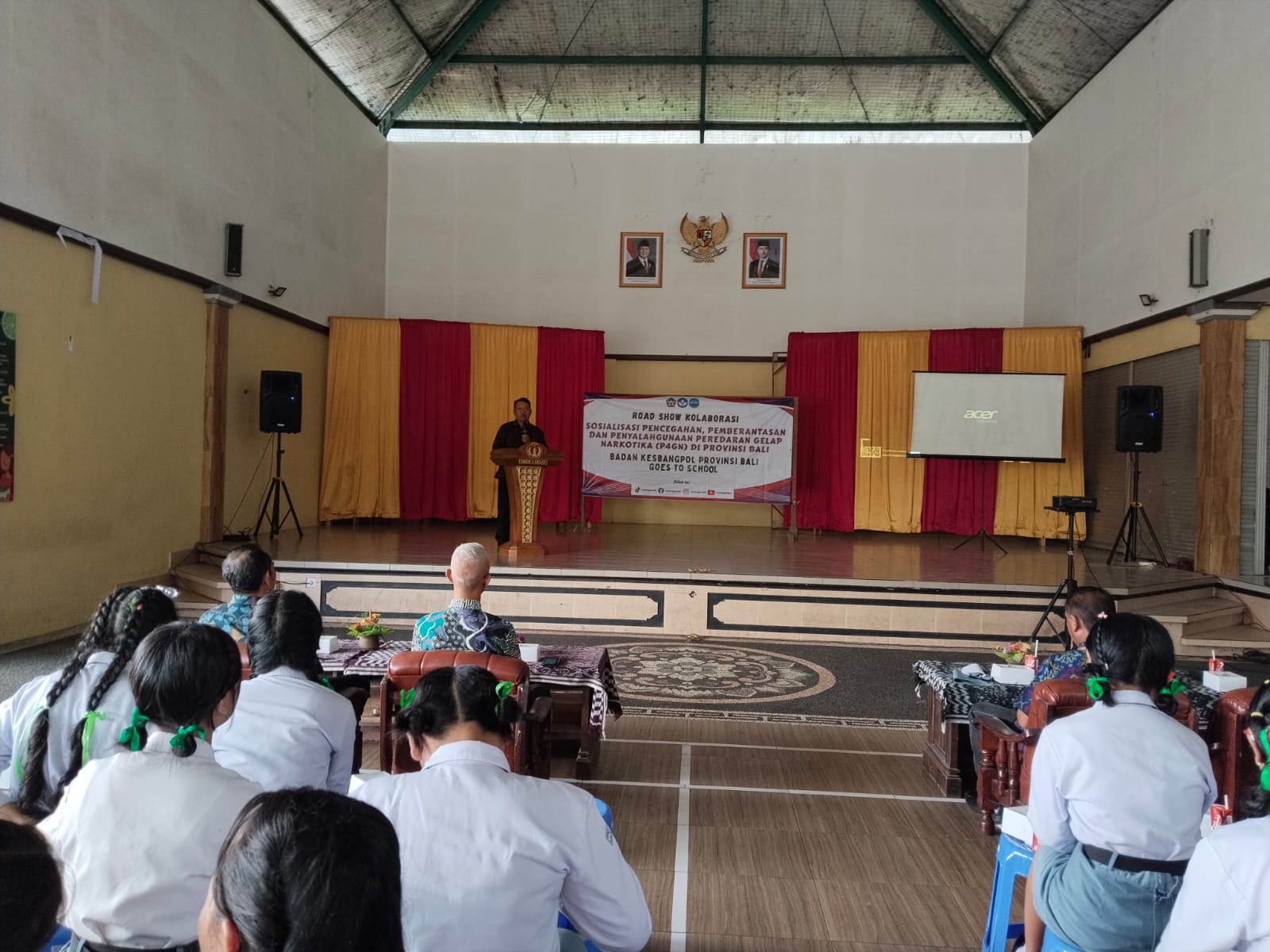 Kepala SMA Negeri 1 Selat, I Komang Sudana Martayasa, S.Pd., M.Pd. Dalam sambutannya, menyampaikan apresiasi atas terselenggaranya kegiatan sosialisasi ini dan berharap para siswa dapat memahami serta menjauhi bahaya narkotika. Ia juga menekankan pentingnya peran sekolah sebagai lingkungan yang aman dan kondusif dalam membentuk karakter generasi muda yang sehat dan berprestasi.