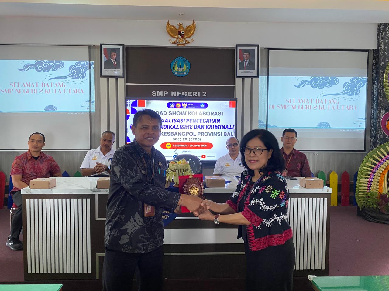 Badung – Jumat, 13 Februari 2026 bertempat di Aula Lantai III SMP Negeri 2 Kuta Utara, Kelurahan Dalung, Kecamatan Kuta Utara, Kabupaten Badung, telah dilaksanakan kegiatan Sosialisasi Pencegahan Paparan Radikalisme dan Kriminalitas.