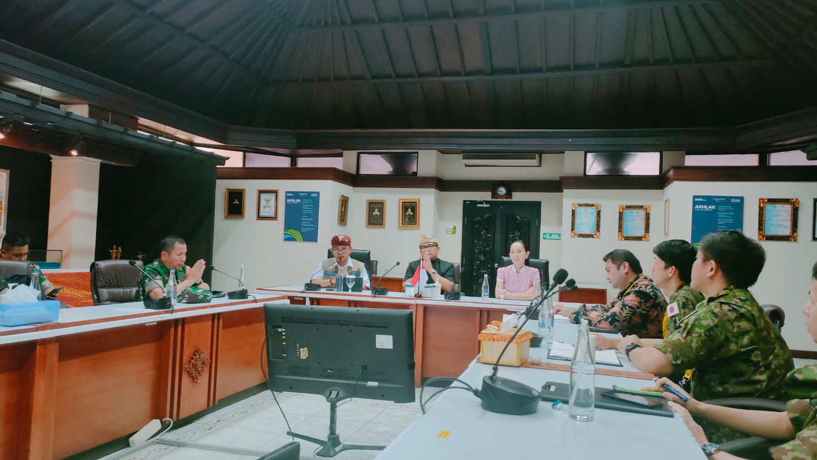 Salah satu acara yang digelar yakni penyampaian paparan oleh Kepala Pelaksana (Kalaksa) BPBD Provinsi Bali, Made Rentin dihadapan jajaran Kemenhan RI dan Delegasi Pertahanan Jepang.