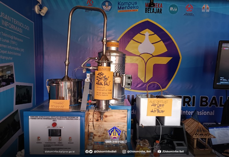 BDF 2024_Denpasar - Universitas Politeknik Negeri Bali ikut memeriahkan Bali Development Festival dengan menampilkan beberapa Teknologi Inovasi dari berbagai jurusan salah satu produk teknologi inovatif yang dipamerkan yaitu teknologi alat destilasi air laut menjadi air tawar dan teknologi destilasi Arak Bali serta beberapa produk teknologi lainnya.