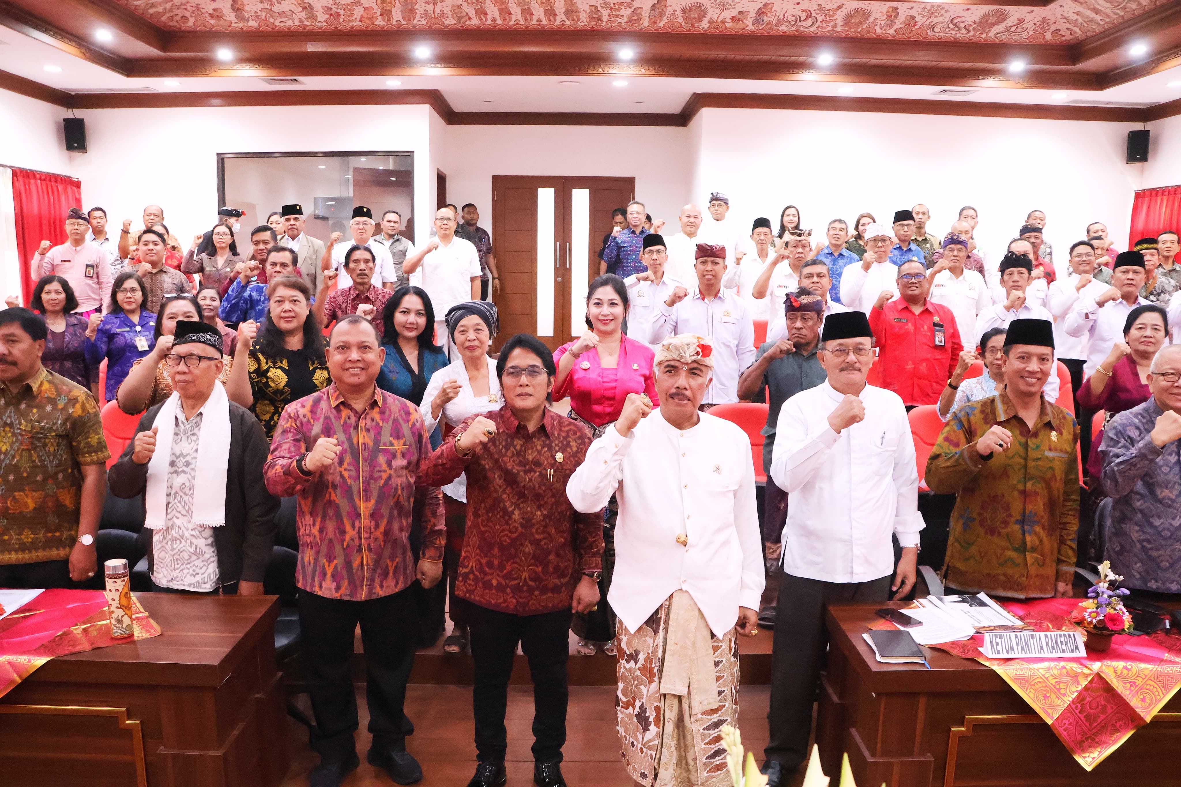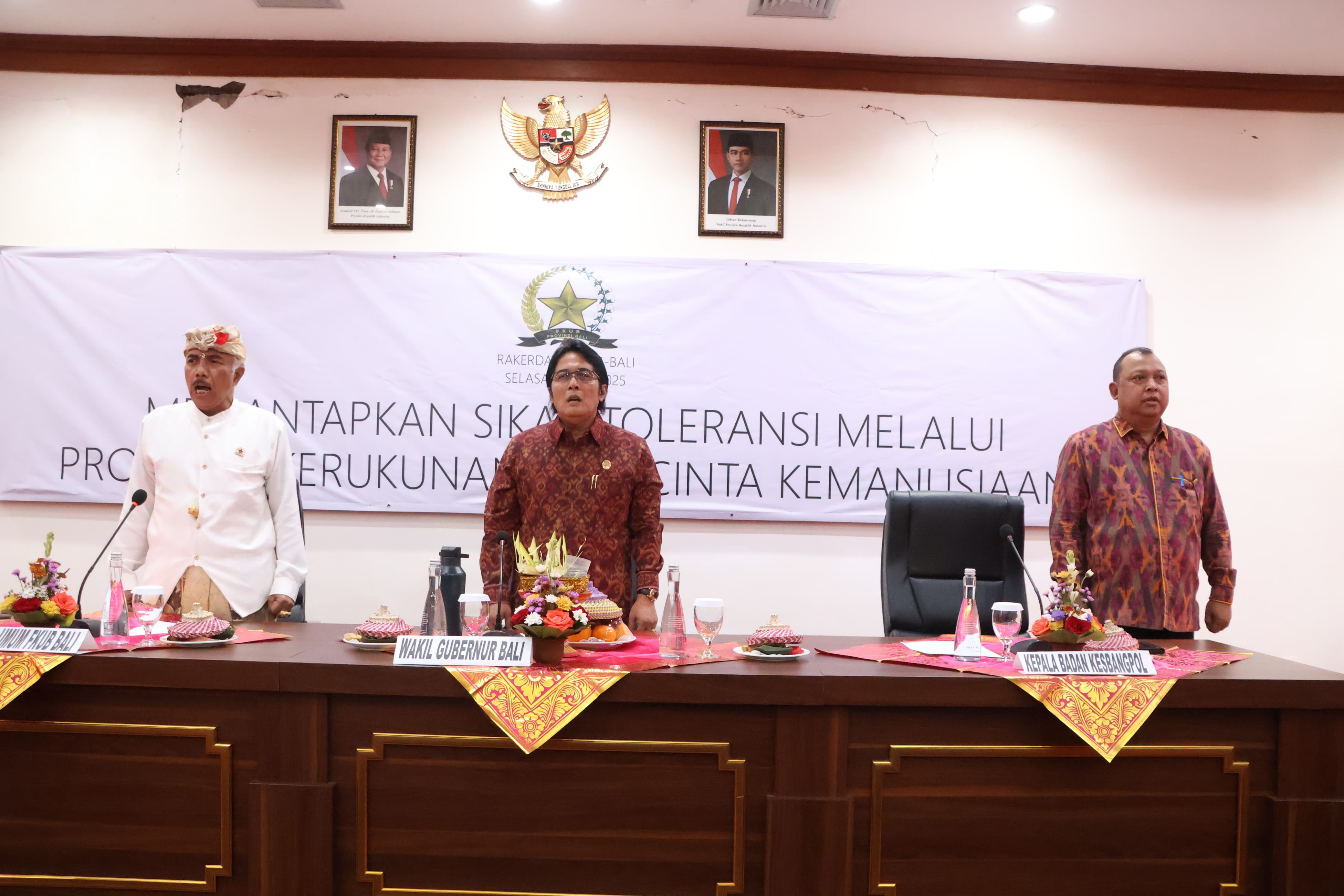 DENPASAR - Wakil Gubernur Bali, I Nyoman Giri Prasta, membuka secara resmi pelaksanaan Rakerda Forum Kerukunan Umat Beragama (FKUB) se-Bali di Gedung Lila Graha, Kantor MDA Provinsi Bali, Renon, Denpasar, Selasa (3/6).